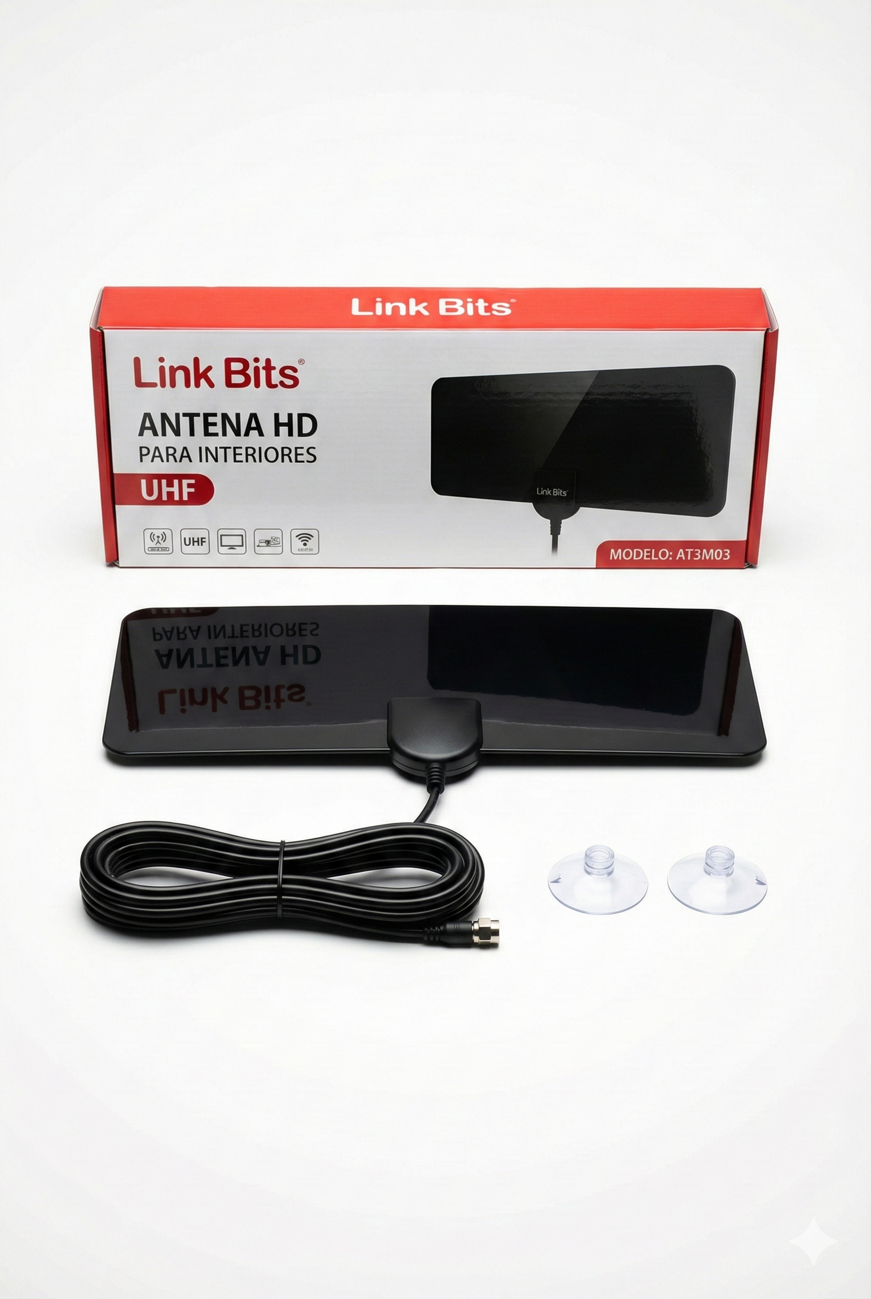 La antena interior LINK BITS AT3M03 es un accesorio práctico y económico que permite recibir señales de televisión abierta digital en alta definición sin necesidad de suscripciones. Gracias a su diseño compacto y su compatibilidad con frecuencias UHF/VHF, es ideal para hogares, departamentos, oficinas o espacios donde no es conveniente usar antenas exteriores. Su instalación es rápida y sencilla: basta con conectarla al televisor o decodificador y buscar canales para empezar a ver.
