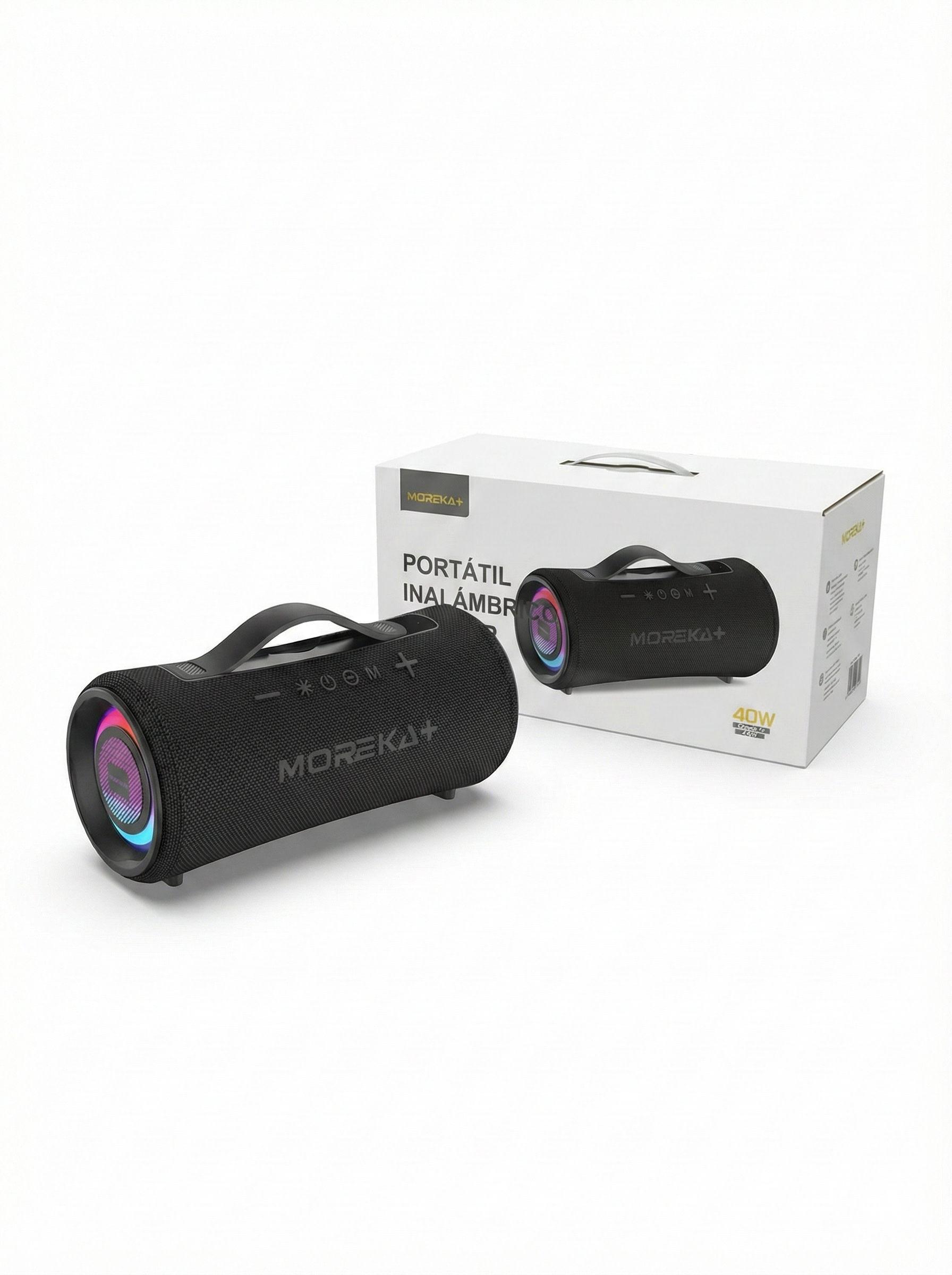 La bocina Moreka A12 es un altavoz bluetooth portátil diseñado para quienes buscan sonido potente y versatilidad en un formato compacto y transportable. Gracias a su potencia de salida de 40 W, ofrece un audio con volumen y claridad suficientes para música, películas o reuniones en espacios pequeños o medianos. Su diseño robusto y moderno la hace ideal tanto para uso en interiores (sala, recámara, oficina) como para exteriores: fiestas, paseos o salidas.