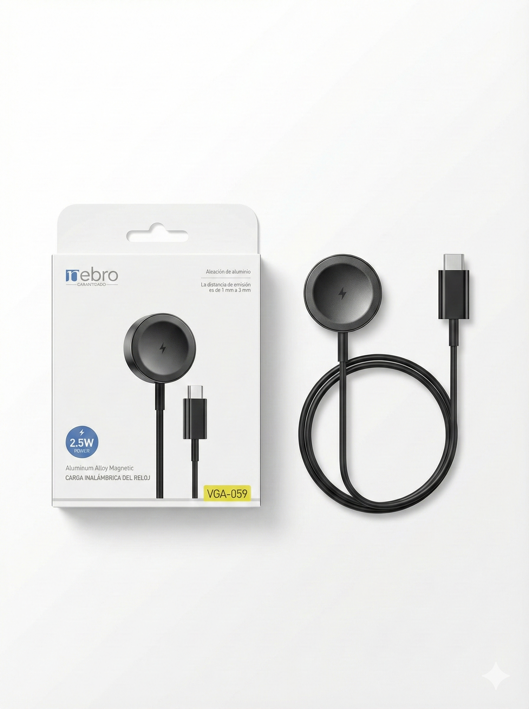 El cargador magnético NEBRO VGA-059 es un accesorio práctico y funcional que facilita la carga de relojes inteligentes mediante conexión magnética. Su diseño compacto y cable con conector tipo C lo hace compatible con diversos modelos de smartwatch, ofreciendo una alternativa cómoda para cargar el dispositivo sin complicaciones. Es ideal como cargador de respaldo o para venta como accesorio independiente.